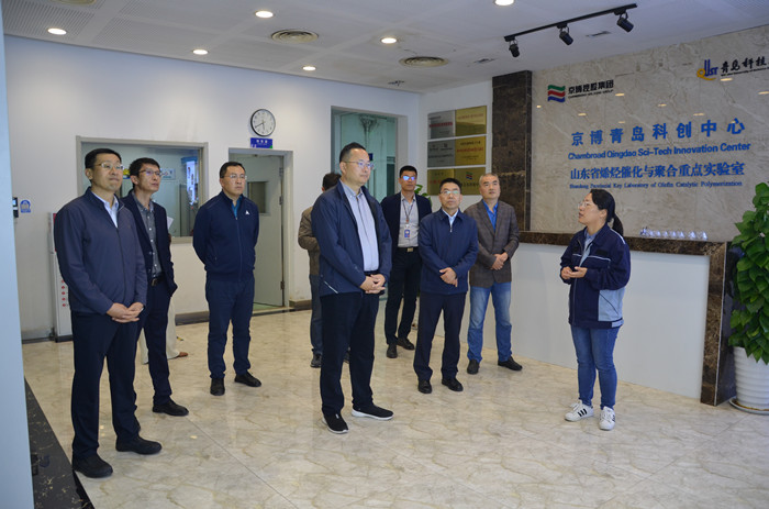 吕万翔向韩千钧一行介绍了园区基本情况,与聚合物微孔发泡轻量化实验室、京博青岛技术研究院等负责人进行了调研交流,考察了星宇青科大研发中心、橡塑材料与工程教育部重点实验室等研发机构。
